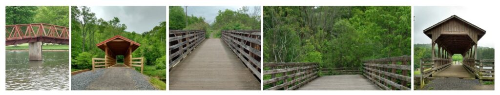 A 1 mile loop trail with forest and water vistas. Highlights include the Erik Benjamin Covered Bridge which spans the spillway of the Marilla Reservoir, three rustic wooden trestle bridges, and a delightful gazebo located at the southwest corner of the trail. The trail head is located along Rt. 346, five miles west of the City of Bradford. Difficulty level is easy.